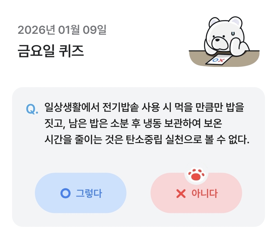 | [기후행동기회소득] 1월 7일 오늘의퀴즈정답 (0) | 2026.01.07 |