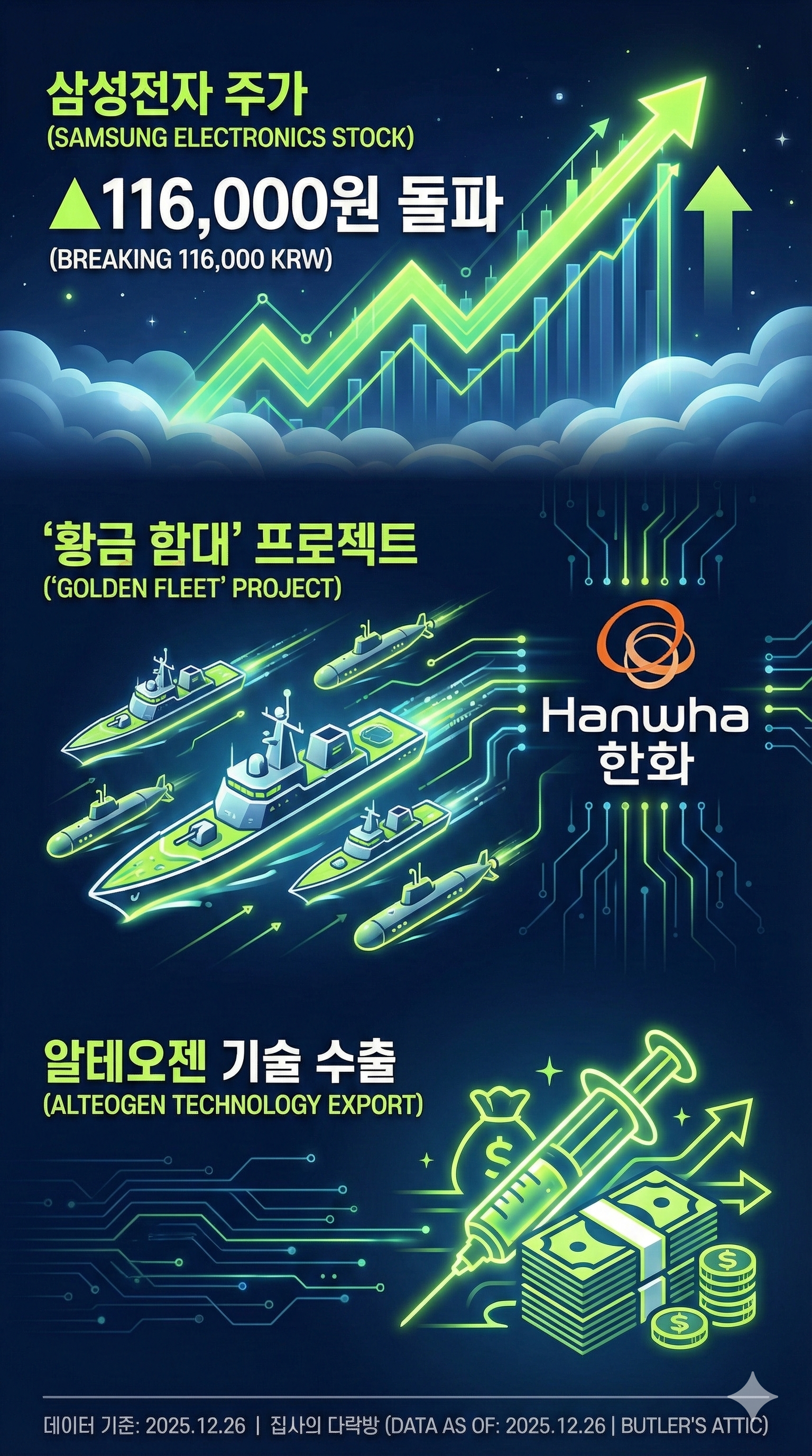 오늘 아침 증권가 리포트를 보고 눈을 의심하신 분들이 많을 겁니다. 삼성전자가 드디어 '16만 전자' 고지를 밟을 것이라는 강력한 전망이 나왔습니다. 현재 11만 6천 원대인 주가를 감안하면 아직도 상승 여력이 40% 이상 남았다는 뜻입니다. 여기에 트럼프 대통령이 콕 집어 언급한 '한화'와 미 해군 재건 프로젝트까지, 오늘 시장은 그야말로 '돈이 되는 이슈'로 가득합니다. 놓치면 후회할 오늘의 핵심 경제 뉴스, 지금 바로 분석해 드립니다.